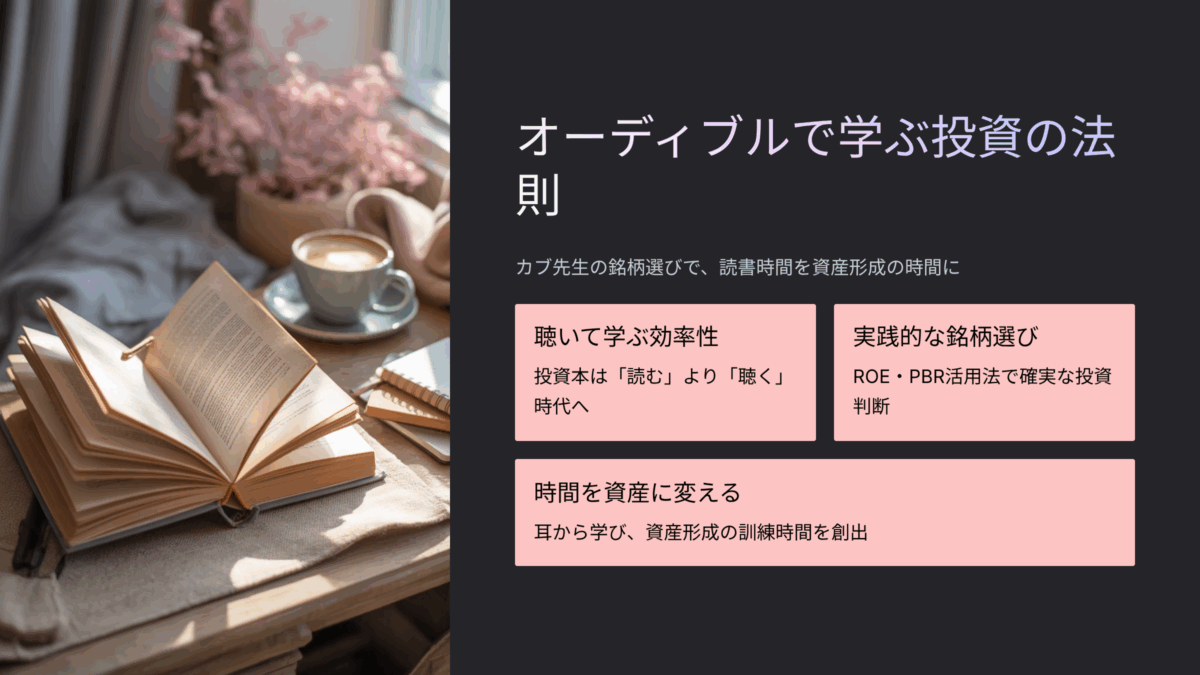 『カブ先生の銘柄選び法則』をオーディブルで聴くことで、あなたが得られる価値は明確です。