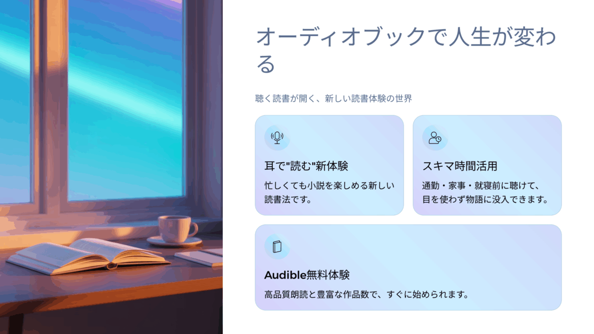 これが、“読む読書”では決して得られない聴覚型の没入体験です。