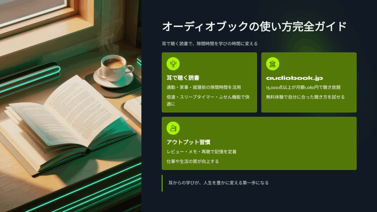 👉忙しい人ほど、まずは audiobook.jp の聴き放題プランを試してみてください。