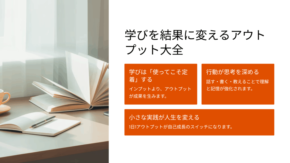 あなたの学びを「行動」と「成果」に変える具体的なヒントを紹介します。