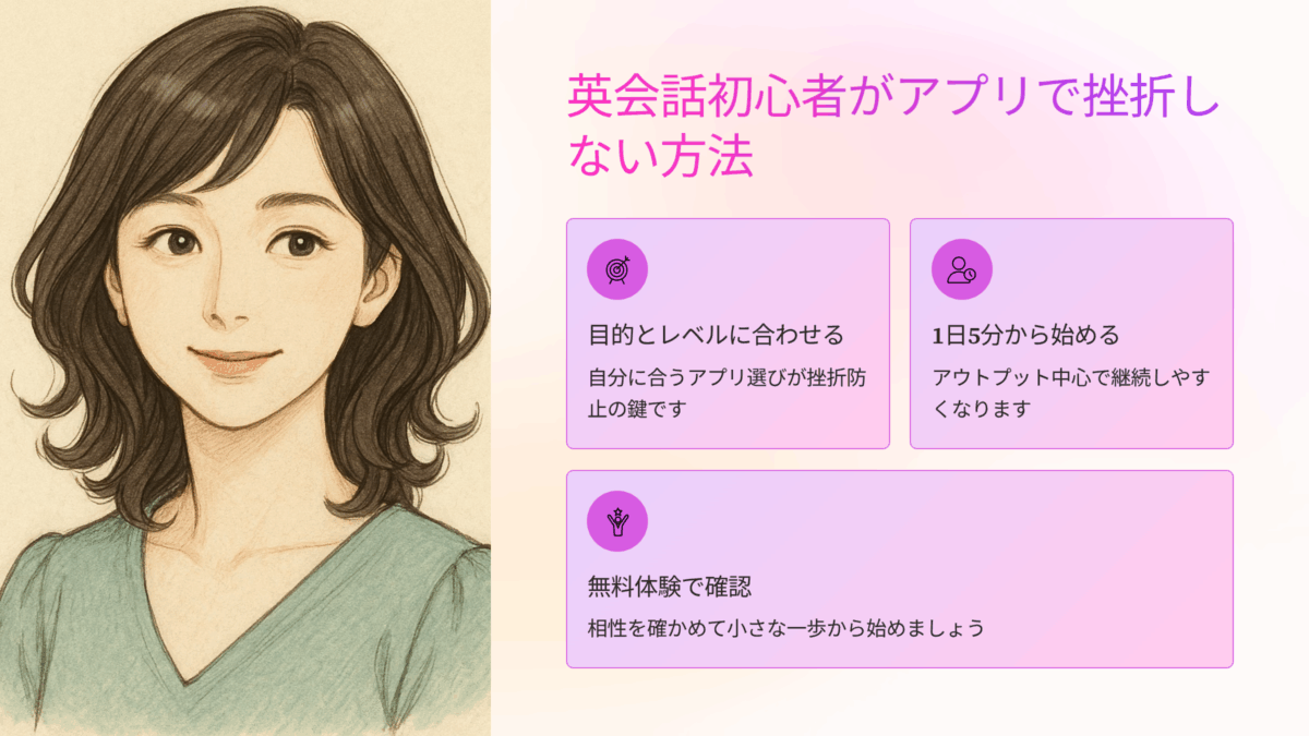 英会話が続く人と途中で止まってしまう人の違いは、「正しいアプリ」よりも「正しい使い方」にあります。
