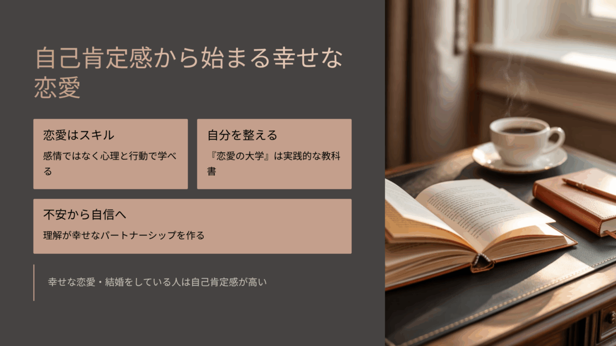 総じて、『恋愛の大学』は“恋愛が苦手な人の自己成長本”として支持されています。