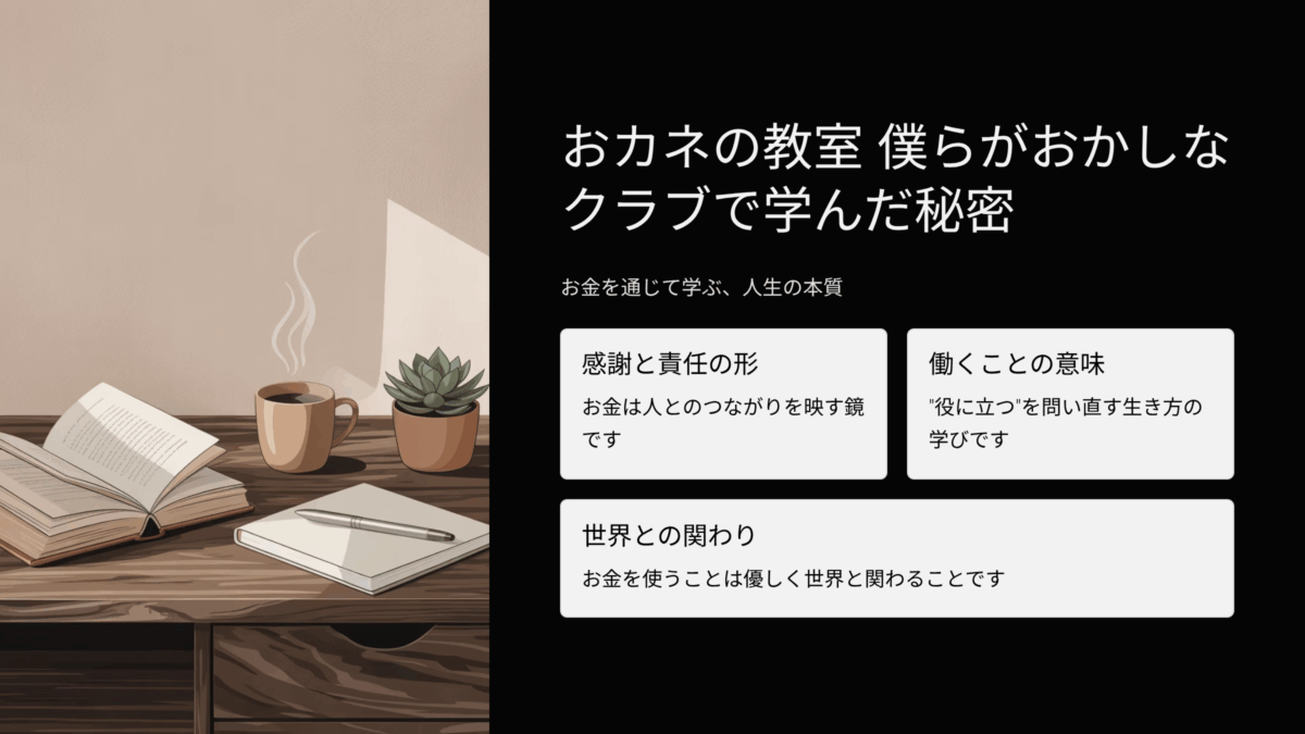 『おカネの教室 僕らがおかしなクラブで学んだ秘密』の口コミ・評判|心が動く心理型レビュー
